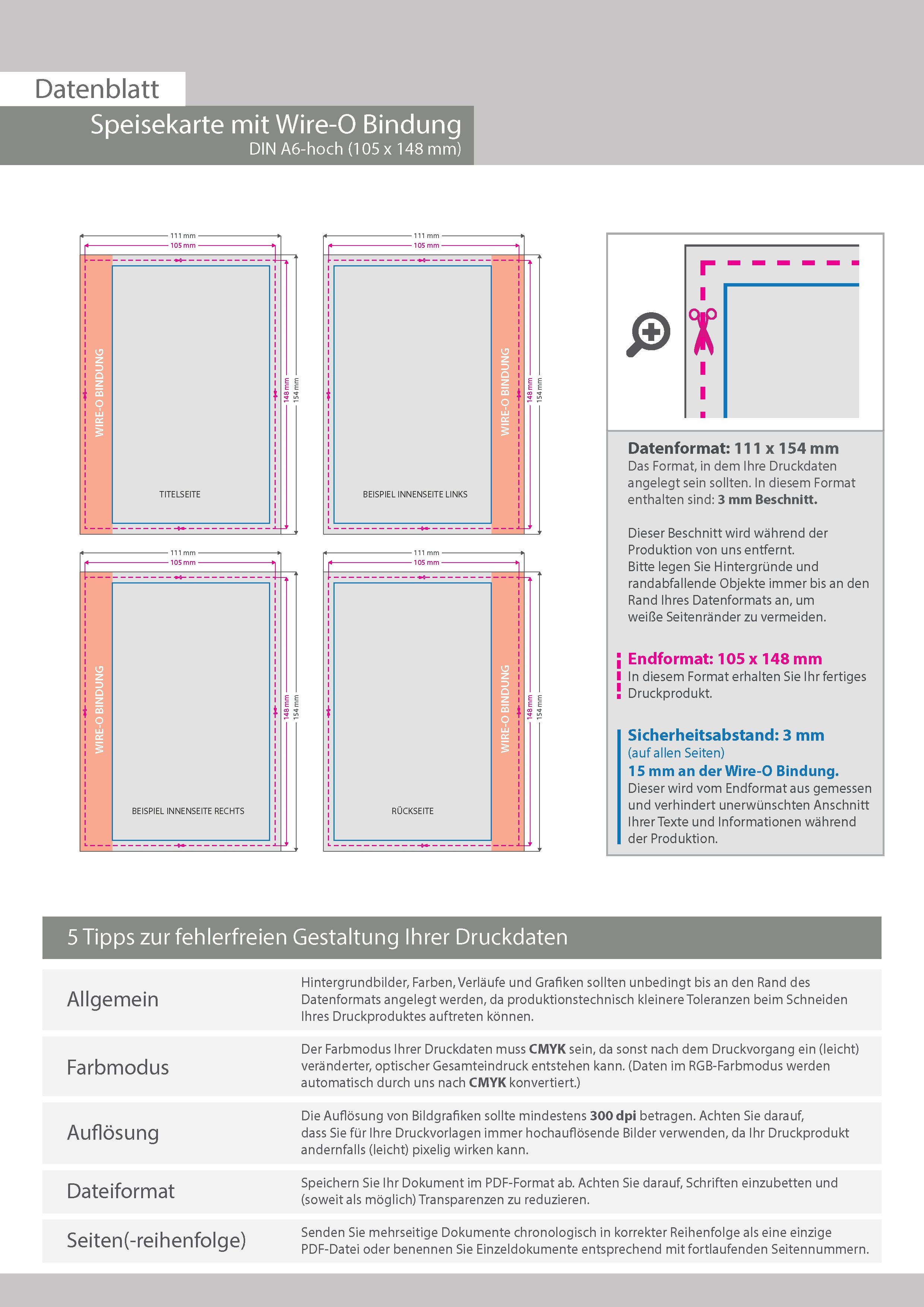 Speisekarte mit Metall-Spiralbindung, Endformat DIN A6, 56-seitig