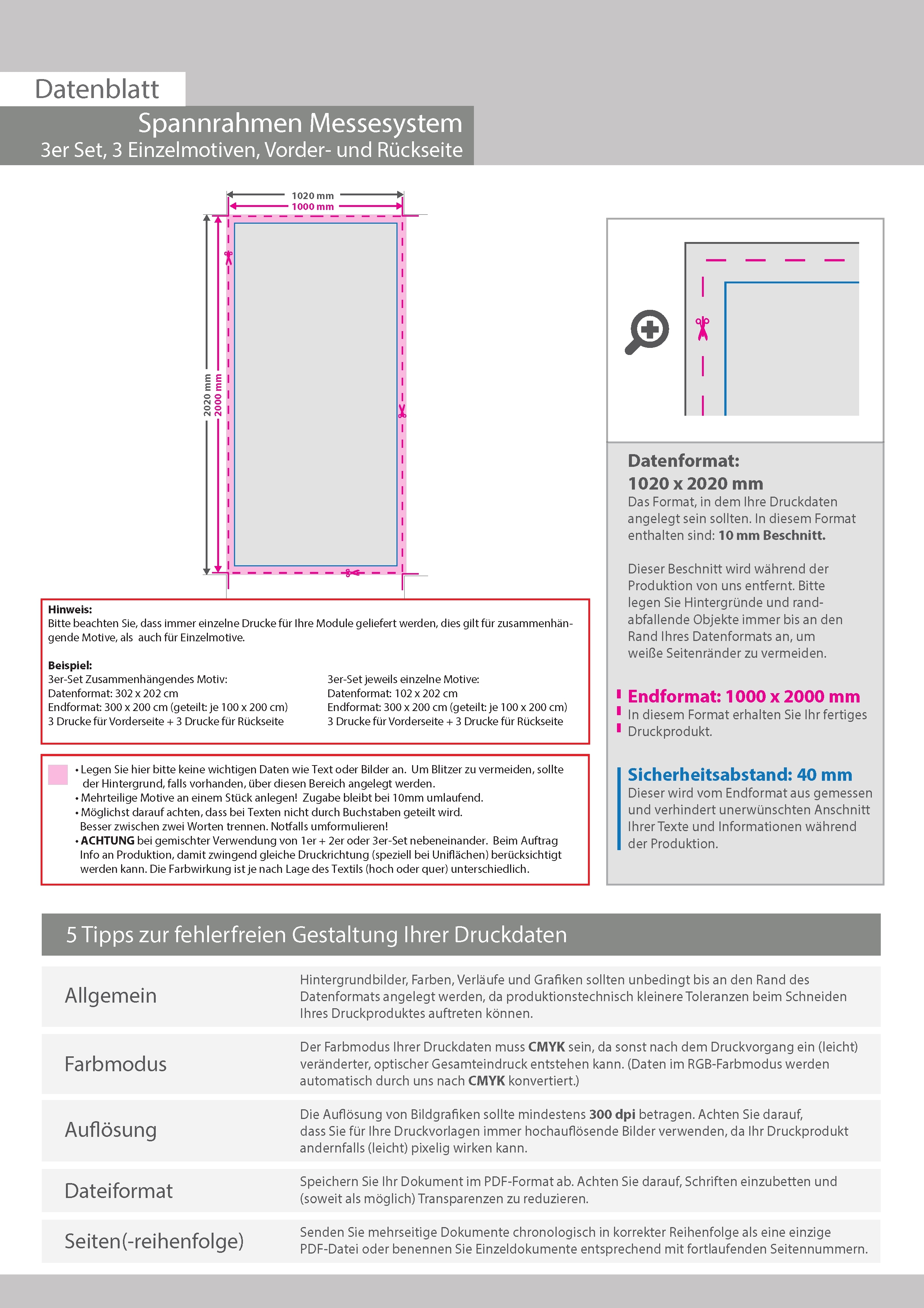 Spannrahmen Messesystem (3er Set) mit drei Einzelmotiven, Vorder- und Rückseite bedruckt, 6 Textile